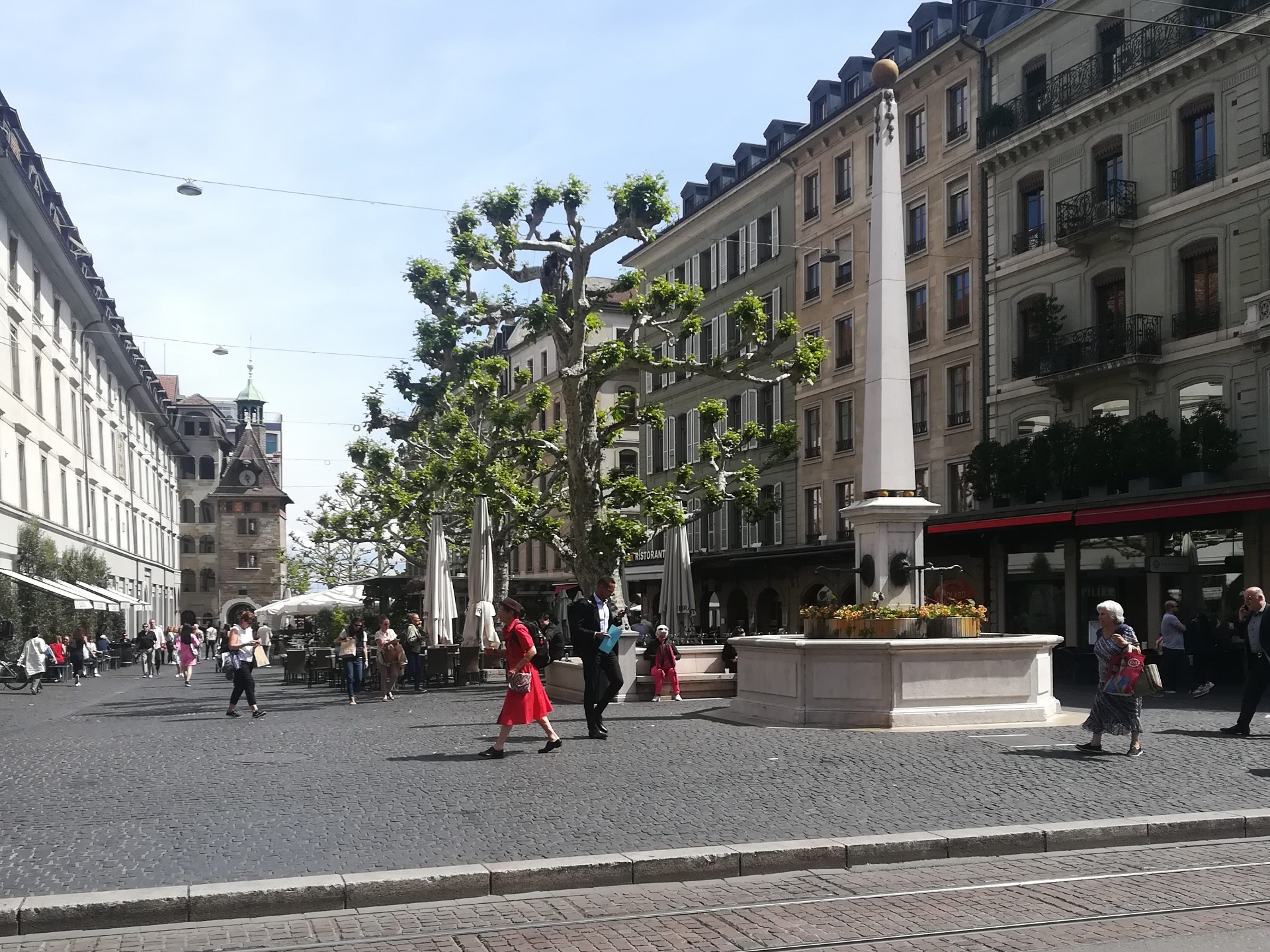 The parallel streets that run around the Place de la Fusterie are home to the most famous and luxurious shops in Geneva.