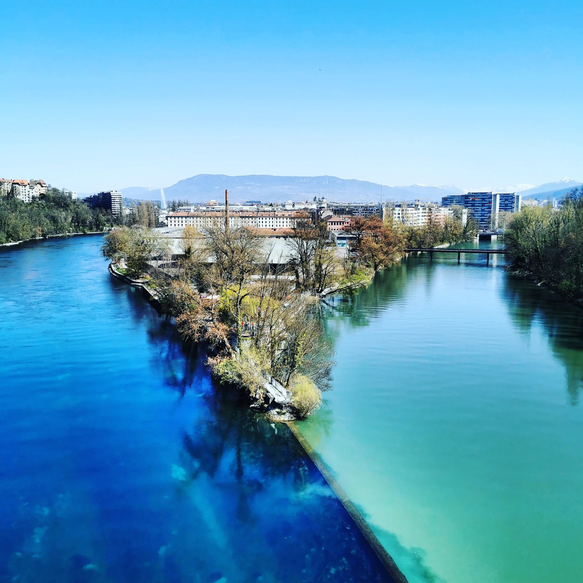 Jonction is a place where rivers Rhône and Arve are joining each other and it creates a beautiful and unique natural phenomenon.